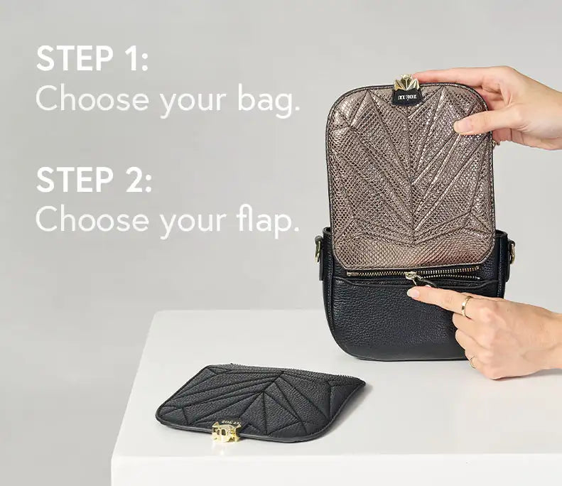 Mit ZOÉ LU kannst du deine Mini Umhängetasche im Handumdrehen verschiedenen Stilen und Anlässen anpassen. Die Auswahl an Wechselklappen und Schulterriemen bietet viele unterschiedliche Farben, Formen und Muster – von klassischen oder verspielten bis hin zu modernen Designs. Dank dieses Konzepts erfindest du deine Mini Bag nach Lust und Laune immer wieder neu – und deine Tasche wird so einzigartig wie du!