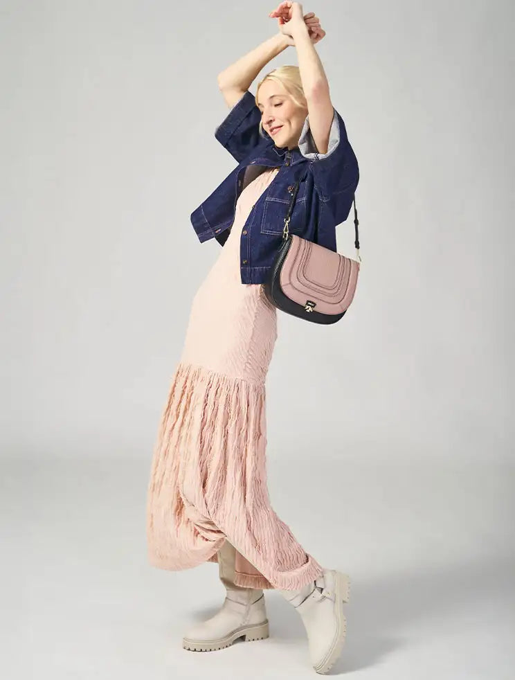 Saddle Bags passen perfekt zu verspielten Boho-Outfits. Sie können sowohl lässig als auch elegant kombiniert werden. Trage sie mit Maxikleidern, Wechselklappen mit Fransen und natürlichen Materialien, um den ultimativen Boho-Look zu kreieren.